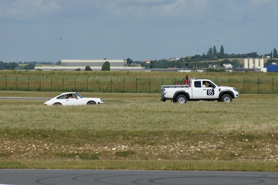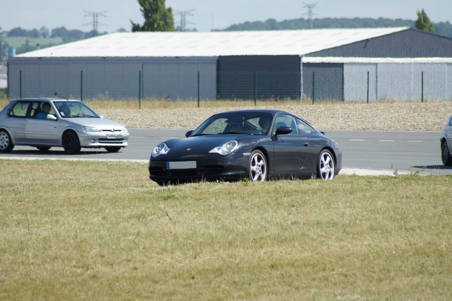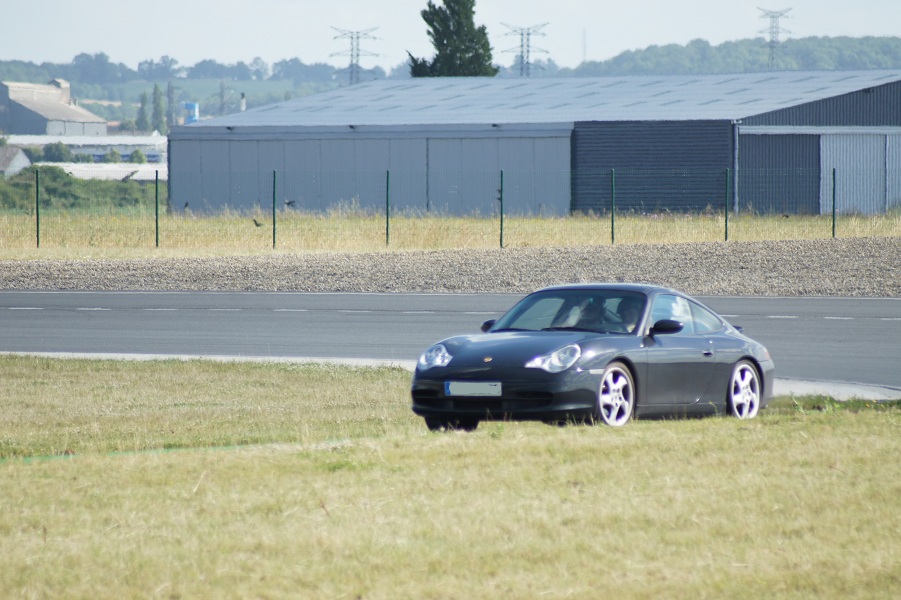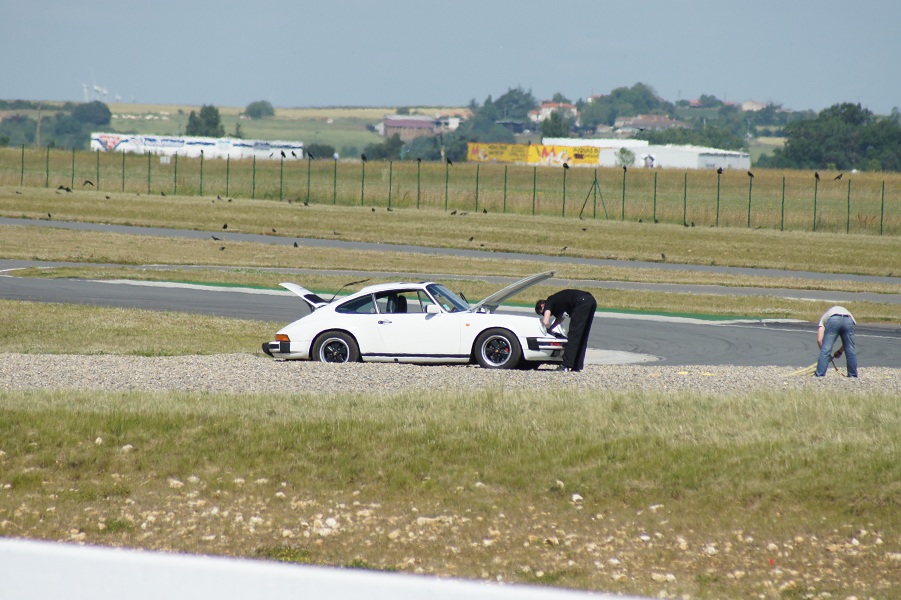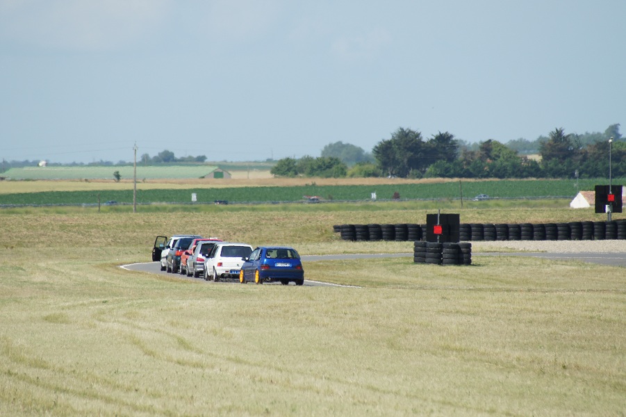 Excellente journée ensoleillée, malheureusement écourtée pour cause d'avion. Quelques bourres sympa avec les autres 106... mais un petit problème de refroidissement, le bouilleur a tendance a chauffer son huile plus que de raison. Une petite frayeur le matin avec un peu d'huile cramée suite au desserrage du cache culbu... Puis un certain flottement dans la pédale de frein au bout de quelques tours, et pour finir, toujours ces déjaugeages dans les longues courbes à droite quand le réservoir est vide de moitié. Du boulot pour la prochaine sortie...